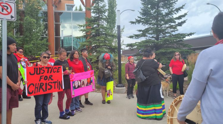 Police tape and RCMP still blocked off the crime scene, while family and friends of Christin took a moment of silence, spoke about her, and drummed and sang.